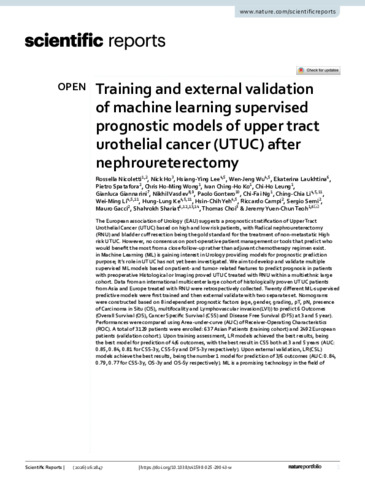 Training and External validation of Machine Learning Supervised prognostic models of Upper tract urothelial cancer (UTUC) after Nephroureterectomy