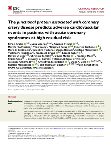 | Keywords | kiaa1462, hs-crp, residual risk, jcad, inflammation, junctional protein associated with coronary artery disease, ldl-c, lipids, acute coronary syndromes, atherosclerosis |