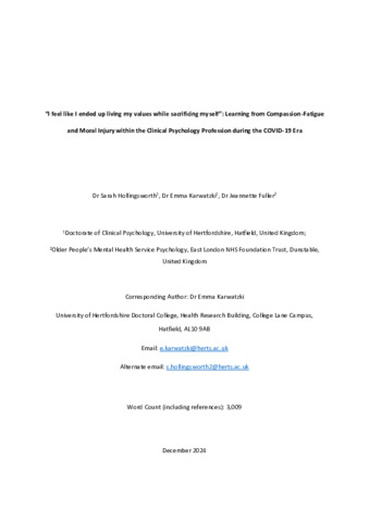 “I feel like I ended up living my values while sacrificing myself”: Learning from Compassion-Fatigue and Moral Injury within the Clinical Psychology Profession during the COVID-19 Era