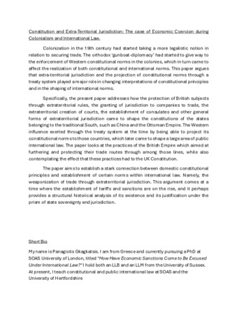 Constitution and Extra-Territorial Jurisdiction: The case of Economic Coercion during Colonialism and International Law.