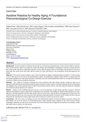 | Additional information | ©Stephen Potter, Mark Hawley, Angela Higgins, Farshid Amirabdollahian, Mauro Dragone, Alessandro Di Nuovo, Praminda Caleb-Solly. Originally published in the Journal of Medical Internet Research (https://www.jmir.org), 28.Jan.2026. This is an open-access article distributed under the terms of the Creative Commons Attribution License (https://creativecommons.org/licenses/by/4.0/) |