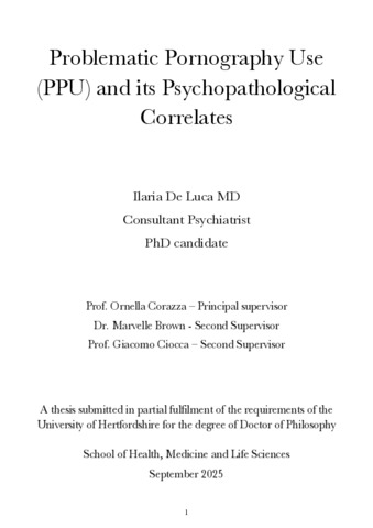 Problematic Pornography Use (PPU) and its Psychopathological Correlates