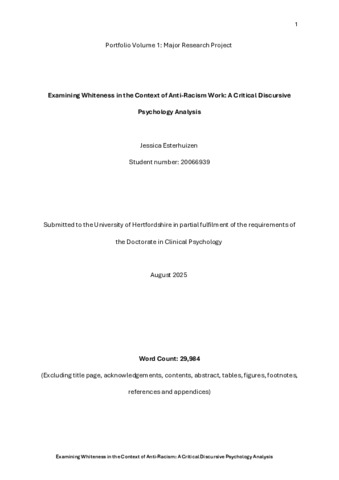 | Keywords | Whiteness, Clinical Psychology, Anti-Racism, Discourse Analysis |