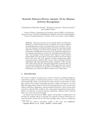 This paper proposes a novel, scalable agentic AI architecture designed to enhance human activity recognition across data modalities by embedding memory-driven reasoning and context awareness. The architecture integrates multimodal sensing, deliberative reasoning through supervised learning and context-aware language models, and memory mechanisms, including short-term memory for tracking immediate activity transitions and long-term memory for embedding experiential knowledge. The evaluation of the proposed model using two major datasets namely RHM (6.7K video clips of 14 known activities) and Toyota Smart Home (16K video clips of 31 unknown activities) demonstrates significant improvements, achieving 60% accuracy when combining contextual information with supervised model output, compared to 40% accuracy with context alone and 35% with supervised models on unseen data. By overcoming the limitations of traditional HAR approaches, this research advances the development of responsive and intelligent robotic systems, facilitating more natural and effective human-robot collaboration.