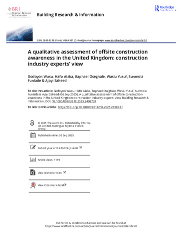 A qualitative assessment of offsite construction awareness in the United Kingdom: construction industry experts' view