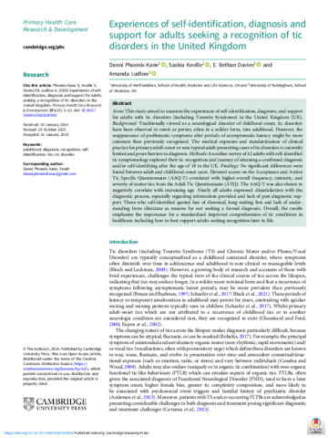 Experiences of self-identification, diagnosis and support for adults seeking a recognition of tic disorders in the United Kingdom