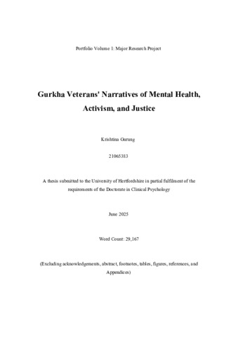 | Keywords | Gurkha Veterans, Mental Health, Activism, Narrative Inquiry, Trauma, Military Veterans, UK Nepali Diaspora, Postcolonial Theory, Critical Race Theory, Social Justice |