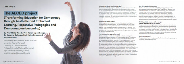 The AECED project (Transforming Education for Democracy through Aesthetic and Embodied Learning, Responsive Pedagogies and Democracy-as-becoming)