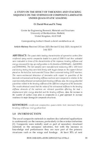 A Study on the Effect of Thickness and Stacking Sequence on the Stiffness of Composite Laminates Under Quasi-Static Loading