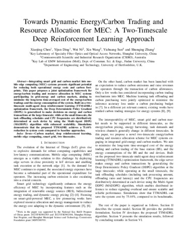 | Keywords | carbon market, deep reinforcement learning, mobile edge computing, smart grid, two timescales, computer networks and communications, safety, risk, reliability and quality, control and optimization |