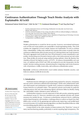 | Keywords | continuous authentication, touch stroke analysis, mobile device security, biometric security, user behavior analysis |