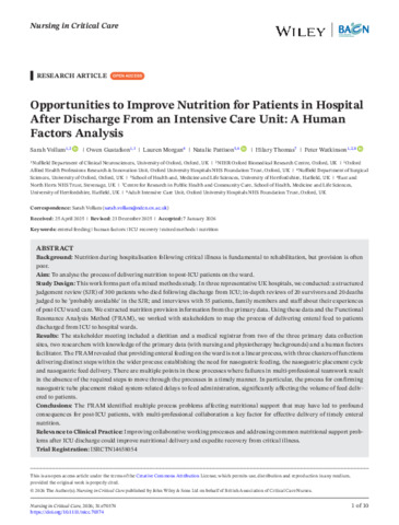 | Keywords | enteral feeding, mixed methods, icu recovery, nutrition, human factors |