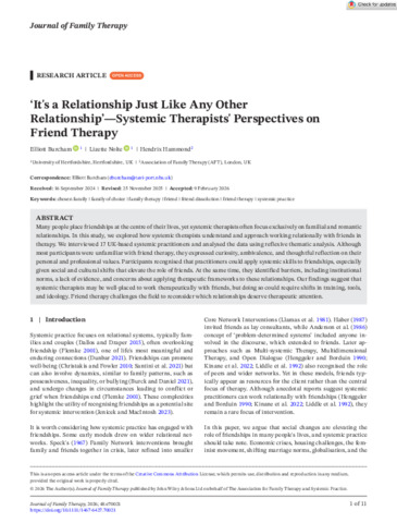 | Keywords | friend therapy, friend dissolution, chosen family, family of choice, friendship, family therapy, systemic practice |