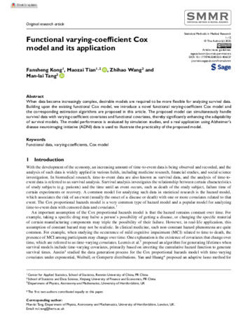 | Keywords | functional data, varying-coefficients, cox model, mathematics(all) |