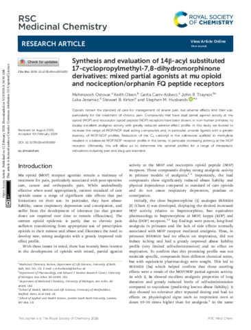 Synthesis and evaluation of 14b-acyl substituted 17-cyclopropylmethyl-7,8-dihydromorphinone derivatives: mixed partial agonists at mu opioid and nociception/orphanin FQ peptide receptors.