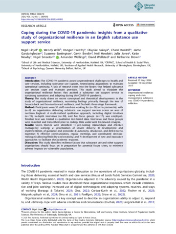 Coping during the COVID-19 pandemic: insights from a qualitative study of organizational resilience in an English substance use support service
