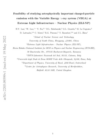 In the environment of a hot plasma, as achieved in stellar explosions, capture and photodisintegration reactions proceeding on excited states in the nucleus can considerably contribute to the astrophysical reaction rate. Usually, such reaction rates including the excited-state contribution are obtained from theoretical calculations as the direct experimental determination of these astrophysical rates is currently unfeasible. Future experiments could provide constraining information on the current reaction models which would improve the predictive power of the theoretical reaction rates. In the present study, experiments of photodisintegration with charged-particle emission leading to specific excited states in the residual nucleus are proposed. The expected experimental results can be used to determine the particle-Transmission coefficients in the model calculations of photodisintegration and capture reactions. With such constrained transmission coefficients, the astrophysical reaction rates especially involving the excited-state contributions can be better predicted and implemented in astrophysical simulations. In particular, (γ,p) and (γ,α) reactions in the mass and energy range relevant to the astrophysical p process are considered and the feasibility of measuring them with the ELISSA detector system at the future Variable Energy γ-ray (VEGA) facility at Extreme Light Infrastructure-Nuclear Physics is investigated. To this end, in a first step 17 reactions with proton emission and 17 reactions with α emission are selected and the dependence of calculated partial cross sections on the variation of nuclear property input is tested. The simulation results reveal that, for the (γ,p) reaction on 12 targets of Si29, Fe56,Se74,Sr84,Zr91,Ru96,98,Pd102,Cd106, and Sn115,117,119, and the (γ,α) reaction on five targets of V50,Sr87,Te123,125, and Sm149, the yields of the reaction channels with the transitions to the excited states in the residual nucleus, namely (γ,Xi) with i≠0, are relevant and even dominant. Therefore, these 17 reactions are considered in the further feasibility study. For each of the 17 photon-induced reactions, in order to attain the detectable limit of 100 counts per day for the total proton or α-particle yields, the minimum required γ-beam energies Elow for the measurements are estimated. It is further found that for each considered reaction, the total yields of the charged-particle X may be dominantly contributed from one, two, or three (γ,Xi) channels within a specific, narrow energy range of the incident γ beam. If the actual measurements of these photon-induced reactions are performed in this energy range, the sum of the yields of the dominant (γ,Xi) channels can be approximated by the measured yields of the charged particle X within acceptable uncertainty. This allows to experimentally obtain the yields of the (γ,Xi) channels which dominantly contribute to the total yields of X. Using the simulated yields, these energy ranges for each of the 17 photon-induced reactions are derived. Furthermore, the energy spectra of the (γ,Xi) channels with 0≤i≤10 are simulated for each considered reaction, with the incident γ-beam energies in the respective energy range as derived before. Based on the energy spectra, the identification of the individual dominant (γ,Xi) channels is discussed. It becomes evident that measurements of the photon-induced reactions with charged-particle emissions considered in this work are feasible with the VEGA+ELISSA system and will provide knowledge useful for nuclear astrophysics.