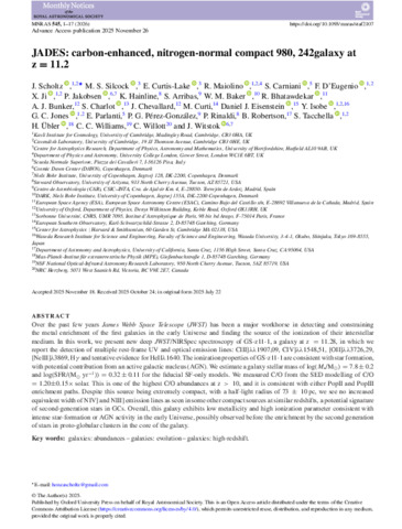 Jades: Carbon-enhanced, Nitrogen-normal compact galaxy at z=11.2