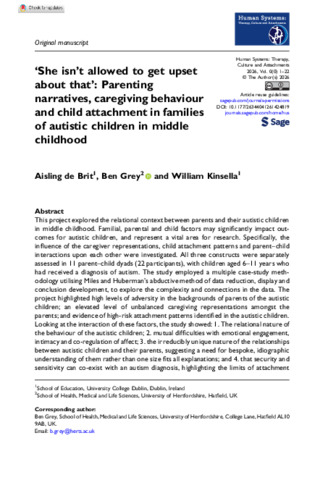 She isn’t allowed to get upset about that”: Parenting narratives, caregiving behaviour and child attachment in families of autistic children in middle childhood