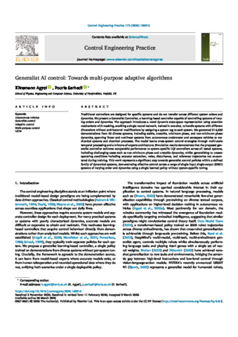 Generalist AI control: Towards multi-purpose adaptive algorithms