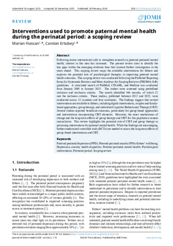 Interventions Used to Promote Paternal Mental Health During the Perinatal Period: A scoping review