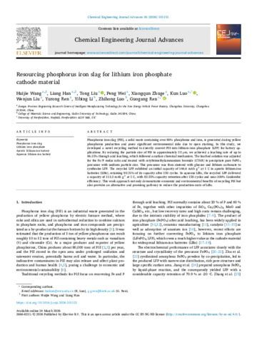Resourcing phosphorus iron slag for lithium iron phosphate cathode material