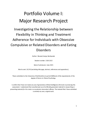 Investigating the Relationship between Flexibility in Thinking and Treatment Adherence for Individuals with Obsessive Compulsive or Related Disorders and Eating Disorders