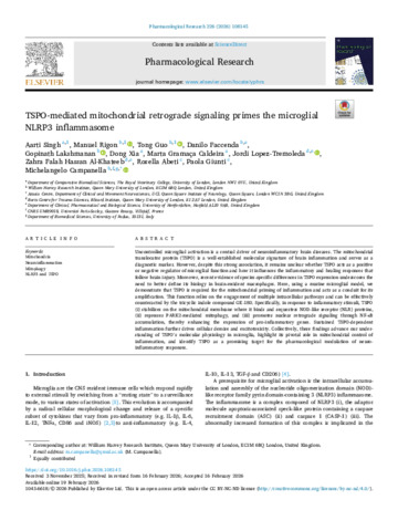 TSPO-Mediated Mitochondrial Retrograde Signaling Primes the Microglial NLRP3 Inflammasome