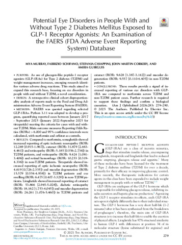 | Keywords | potential eye disorders, glp-1 receptor agonists, faers (fda adverse event reporting system) database |