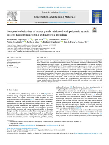 | Keywords | 3d printing, cementitious material, numerical modelling, reinforcing auxetic lattice, civil and structural engineering, building and construction, general materials science |