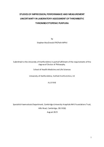 | Keywords | Thrombotic Thrombocytopaenia Purpura, Measurement uncertainty, Laboratory haemostasis, Assay performance, Haemostasis |