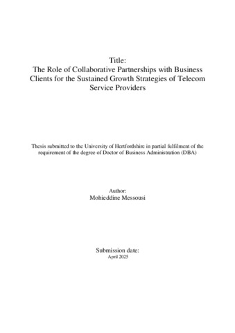 The Role of Collaborative Partnerships with Business Clients for the Sustained Growth Strategies of Telecom Service Providers