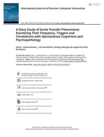 A diary study of Game Transfer Phenomena: Examining their frequency, triggers and correlations with spontaneous cognitions and psychopathology