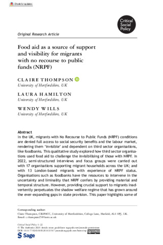Food aid as a source of support and visibility for migrants with no recourse to public funds (NRPF)