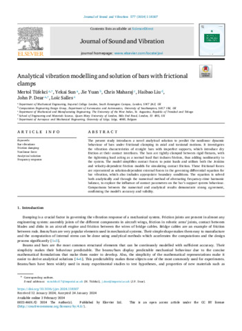 | Keywords | analytical solution, bar vibrations, frequency response, friction damping, nonlinear force, condensed matter physics, mechanics of materials, acoustics and ultrasonics, mechanical engineering |