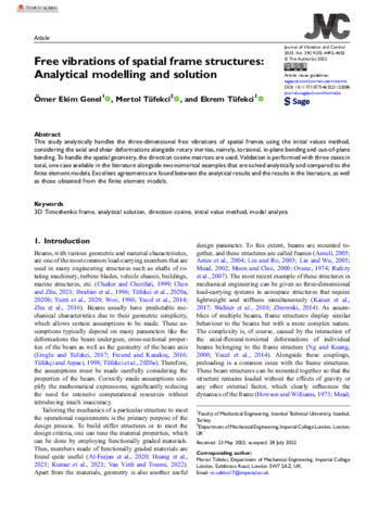 Free vibrations of spatial frame structures: Analytical modelling and solution.