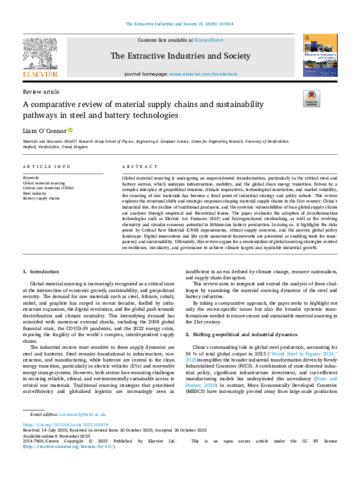 Global material sourcing is undergoing an unprecedented transformation, particularly in the critical steel and battery sectors,which underpin infrastructure, mobility, and the global clean energy transition. Driven by a complex interplay of geopoliticaltensions, climate imperatives, technological innovation, and market volatility, the sourcing of raw materials has become a focalpoint of industrial strategy and policy debate. This review explores the structural shifts and strategic responses shaping materialsupply chains in the 21st century. China’s industrial rise, the decline of traditional producers, and the systemic vulnerabilitiesof lean global supply chains are analyses through empirical and theoretical lenses. The paper evaluates the adoption ofdecarbonisation technologies such as Electric Arc Furnaces (EAF) and hydrogen-based steelmaking, as well as the evolvingchemistry and circular economy potential in lithium-ion battery production. In doing so, it highlights the risks posed by CriticalRaw Material (CRM) dependencies, ethical supply concerns, and the uneven global policy landscape. Digital innovations andlife cycle assessment frameworks are presented as enabling tools for transparency and sustainability. Ultimately, this reviewargues for a reorientation of global sourcing strategies centred on resilience, circularity, and governance to achieve climatetargets and equitable industrial growth.