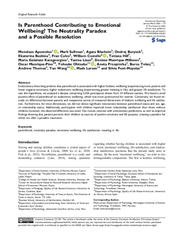 | Keywords | emotional wellbeing, meaning in life, neutrality paradox, life satisfaction, parenthood |