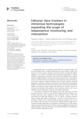 Editorial: New frontiers in immersive technologies: expanding the scope of telepresence, monitoring, and intervention