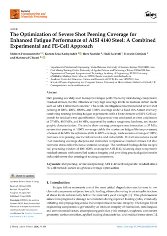| Keywords | shot peening; severe shot peening; aisi 4140 steel; fatigue life; residual stress; fe-cell method; surface roughness; coverage optimization |