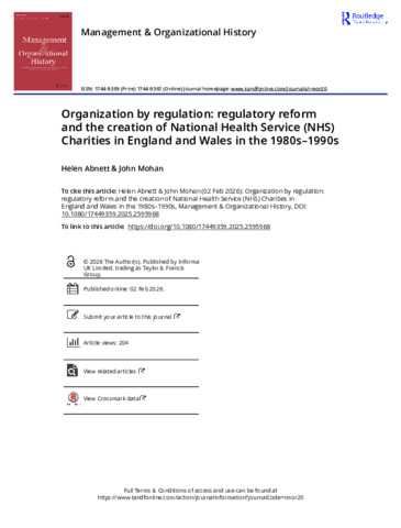 Organization by regulation: regulatory reform and the creation of National Health Service (NHS) Charities in England and Wales in the 1980s-1990s