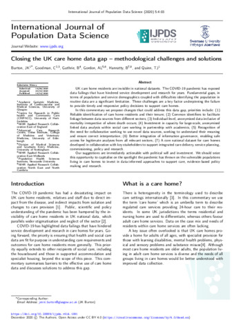 UK care home residents are invisible in national datasets. The COVID-19 pandemic has exposed data failings that have hindered service development and research for years. Fundamental gaps, in terms of population and service demographics coupled with difficulties identifying the population in routine data are a significant limitation. These challenges are a key factor underpinning the failure to provide timely and responsive policy decisions to support care homes. In this commentary we propose changes that could address this data gap, priorities include: (1) Reliable identification of care home residents and their tenure; (2) Common identifiers to facilitate linkage between data sources from different sectors; (3) Individual-level, anonymised data inclusive of mortality irrespective of where death occurs; (4) Investment in capacity for large-scale, anonymised linked data analysis within social care working in partnership with academics; (5) Recognition of the need for collaborative working to use novel data sources, working to understand their meaning and ensure correct interpretation; (6) Better integration of information governance, enabling safe access for legitimate analyses from all relevant sectors; (7) A core national dataset for care homes developed in collaboration with key stakeholders to support integrated care delivery, service planning, commissioning, policy and research. Our suggestions are immediately actionable with political will and investment. We should seize this opportunity to capitalise on the spotlight the pandemic has thrown on the vulnerable populations living in care homes to invest in data-informed approaches to support care, evidence-based policy making and research.