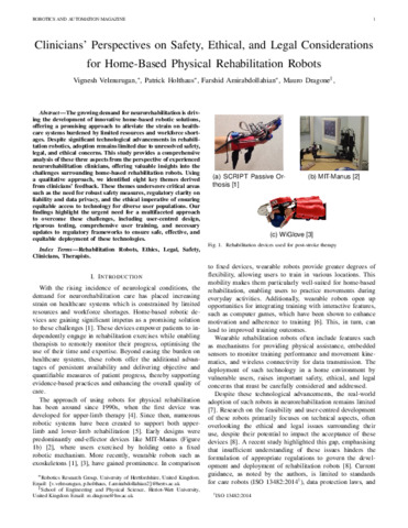 Clinicians’ Perspectives on Safety, Ethical, and Legal Considerations for Home-Based Physical Rehabilitation Robots