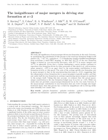 We study the significance of major-merger-driven star formation in the early Universe, by quantifying the contribution of this process to the total star formation budget in 80 massive (M* > 1010 M) galaxies at z ≃ 2. Employing visually classified morphologies from restframe V-band Hubble Space Telescope (HST) imaging, we find that 55 per cent of the star formation budget is hosted by non-interacting late types, with 27 per cent in major mergers and 18±6 per cent in spheroids. Given that a system undergoing a major merger continues toexperience star formation driven by other processes at this epoch (e.g. cold accretion and minor mergers), ~27 per cent is an upper limit to the major-merger contribution to star formation activity at this epoch. The ratio of the average specific star formation rate in major mergers to that in the non-interacting late types is ~2.2:1, suggesting that the enhancement of star formation due tomajor merging is typically modest, and that just under half the star formation in systemsexperiencing major mergers is unrelated to the merger itself. Taking this into account, we estimate that the actual major-merger contribution to the star formation budget may be as low as~15 per cent. While our study does not preclude a major-merger-dominated era in the very early Universe, if the major-merger contribution to star formation does not evolve strongly into larger look-back times, then this processhas a relatively insignificant role in driving stellar mass assembly over cosmic time.