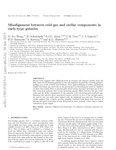 Recent work suggests blue ellipticals form in mergers and migrate quickly from the blue cloud of star-forming galaxies to the red sequence of passively evolving galaxies, perhaps as a result of black hole feedback. Such rapid reddening of stellar populations implies that large gas reservoirs in the pre-merger star-forming pair must be depleted on short time-scales. Here we present pilot observations of atomic hydrogen gas in four blue early-type galaxies that reveal increasing spatial offsets between the gas reservoirs and the stellar components of the galaxies, with advancing post-starburst age. Emission line spectra show associated nuclear activity in two of the merged galaxies, and in one case radio lobes aligned with the displaced gas reservoir. These early results suggest that a kinetic process (possibly feedback from black hole activity) is driving the quick truncation of star formation in these systems, rather than a simple exhaustion of gas supply