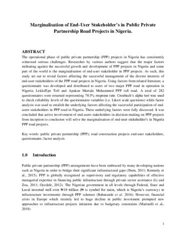 Marginalisation of End-User Stakeholder’s in Public Private Partnership Road Projects in Nigeria