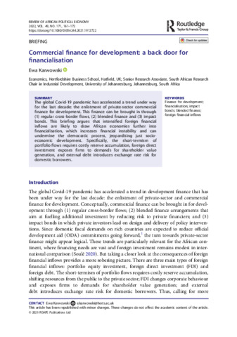 Commercial finance for development: A back door for financialisation