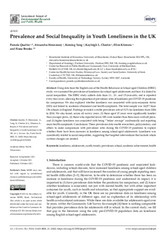 | Keywords | loneliness, adolescents, youth, trends, prevalence, school, academic achievement, health, pandemics, prevalence, humans, socioeconomic factors, epidemiology, covid-19, sars-cov-2, adolescent, loneliness, child |